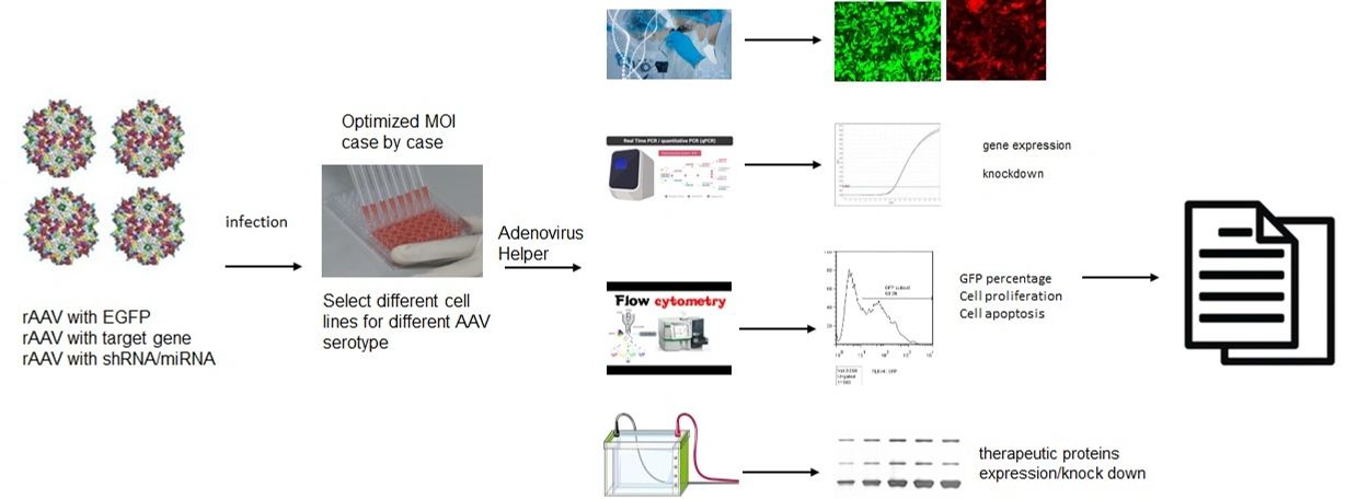 You will provide the AAV shRNA/miRNA vectors and cell lines used for assay, we only provide free HEK293 cells for assay. After assay, we provide you qPCR data and an experimental report.